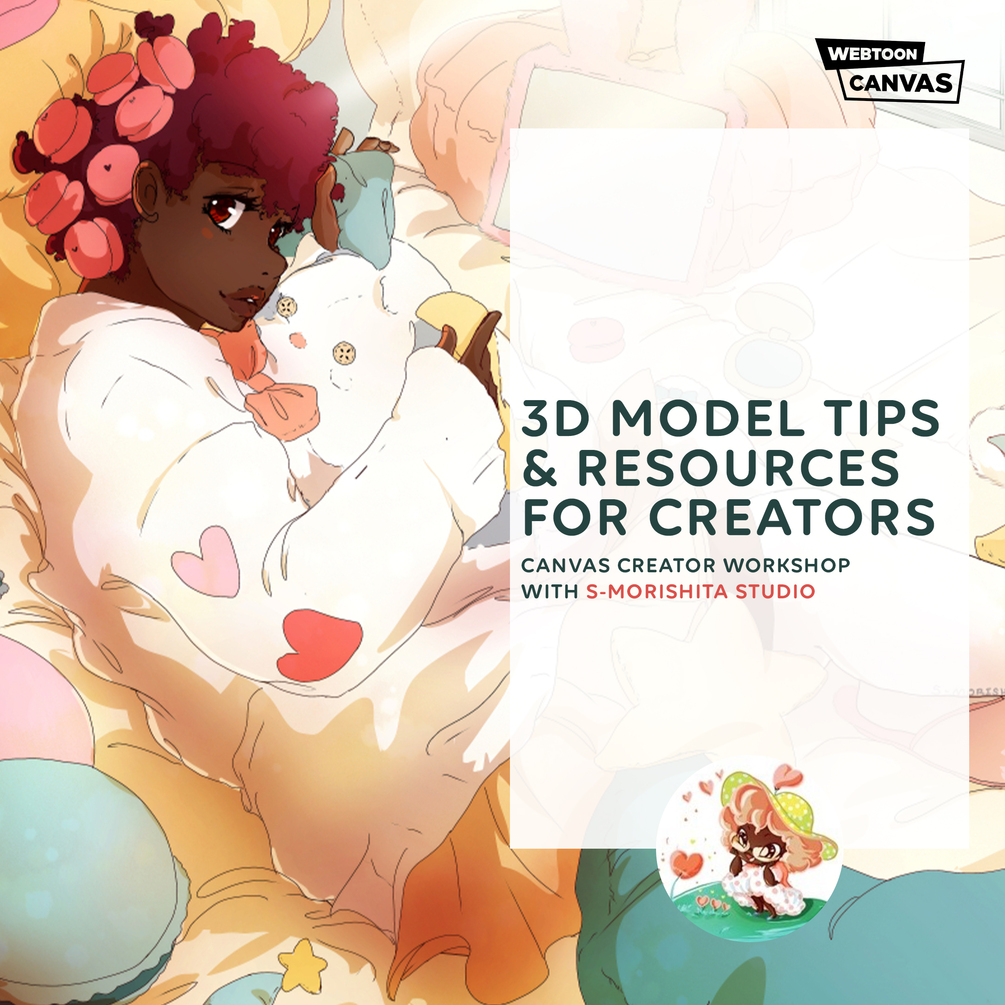 If you're a beginner at using 3D models and want a simple step by step guidebook on how S-Morishita Studio utilizes 3D models to create her webtoon and 6+ published books then feel free to download this ebook which follows along with the 3D model Workshop that S-Morishita Studio did in collaboration with WEBTOON Canva